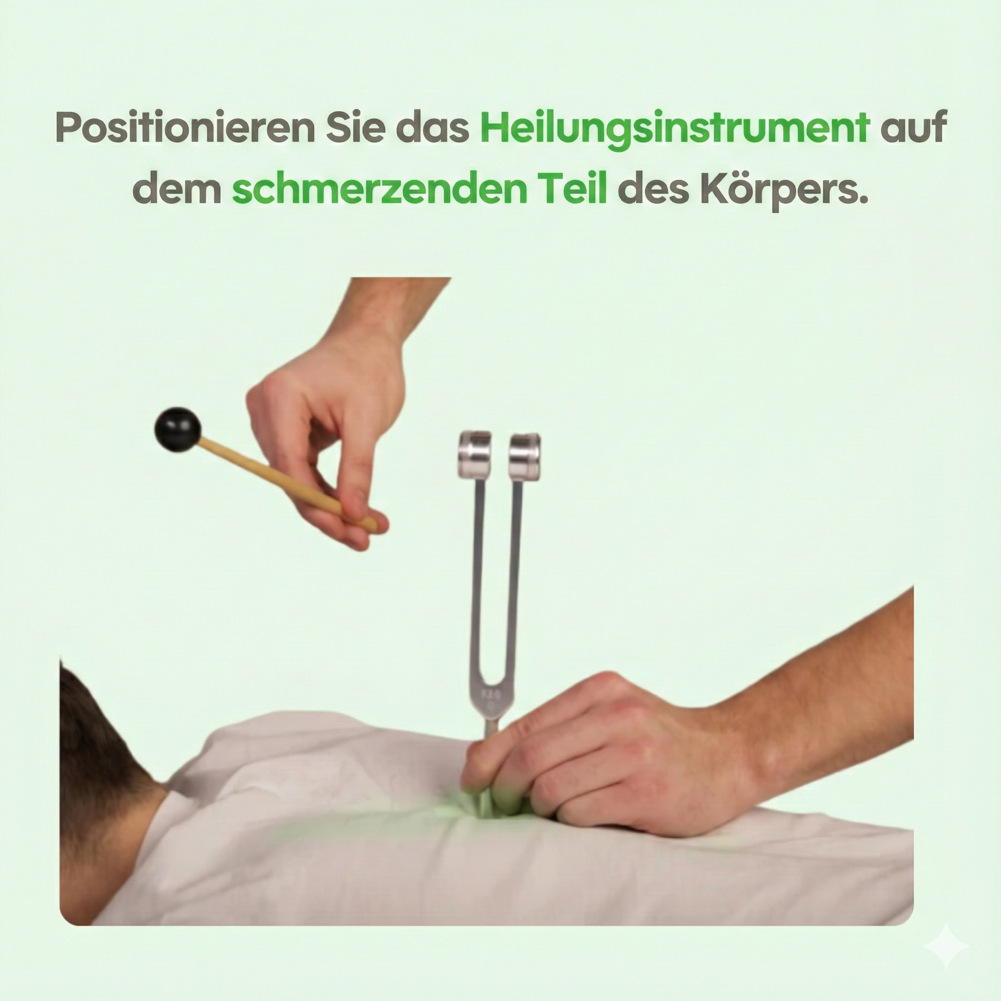 Quando si colpisce e si posiziona lo strumento a 128 Hz su un punto dolente, la delicata vibrazione stimola le cellule locali a rilasciare una piccola quantità di ossido nitrico (NO).